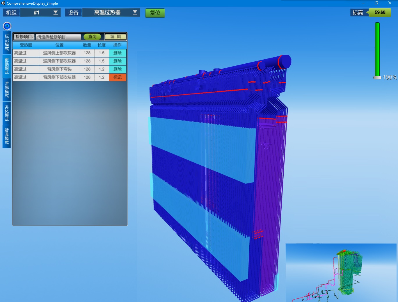 云酷科技針對(duì)鍋爐四管防磨防爆所設(shè)計(jì)的管理系統(tǒng)通過(guò)三維可視化平臺(tái),利用日常運(yùn)行與檢查過(guò)程中的各類(lèi)數(shù)據(jù),為運(yùn)行、檢修人員的設(shè)備狀態(tài)監(jiān)控、劣化趨勢(shì)評(píng)估、防護(hù)措施選取、檢修工作安排等工作提供便捷的輔助工具,實(shí)現(xiàn)變被動(dòng)應(yīng)對(duì)為主動(dòng)干預(yù)。