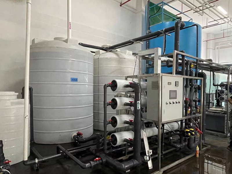 當二種不同濃度溶液,由一個半透膜隔開時,滲透現象會自然發生。滲透壓將壓力過半透膜,水將濃度較高的溶液稀釋,進而導致濃度平衡。在超純水設備中,施加壓力于高濃度溶液中,以抗衡滲透壓。如此迫使得超純水由高濃度液體依據RO膜并可加以收集。由于RO膜致密度極高,因此,產出的水流很慢,需經過相當的時間,貯水箱內才能有足夠的水量。